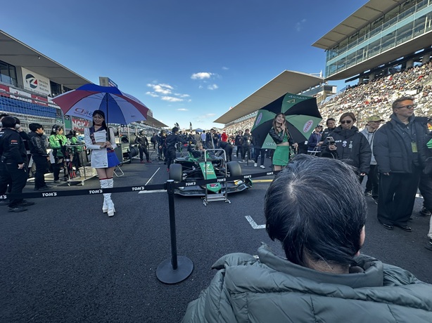 レース会場の裏側を歩いていると、警察手帳を見せられ「ここで少し待機してください」との指示。その後、なんと瑶子女王にお会いできました!2025年「全日本スーパーフォーミュラ選手権シリーズ」の名誉総裁を務められているとのこと。思いがけない特別な瞬間でした。