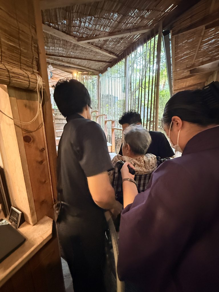 階段を下りて床のお席があるのですが、帰りにはスタッフの男性が車いすを担ぎ上げてくださいました。
