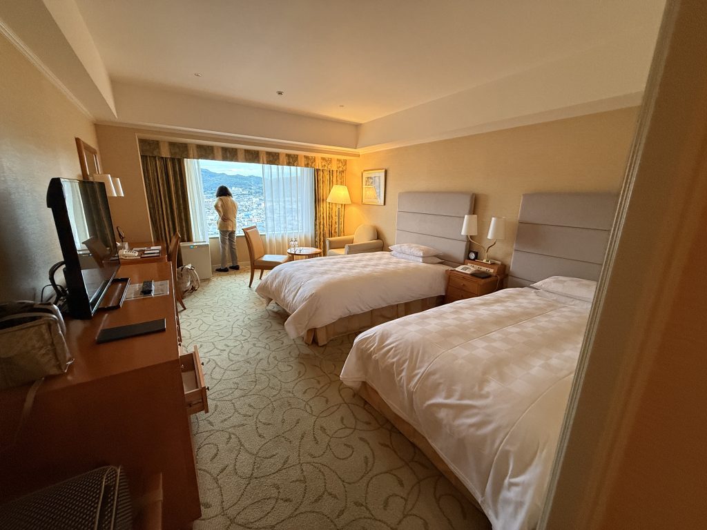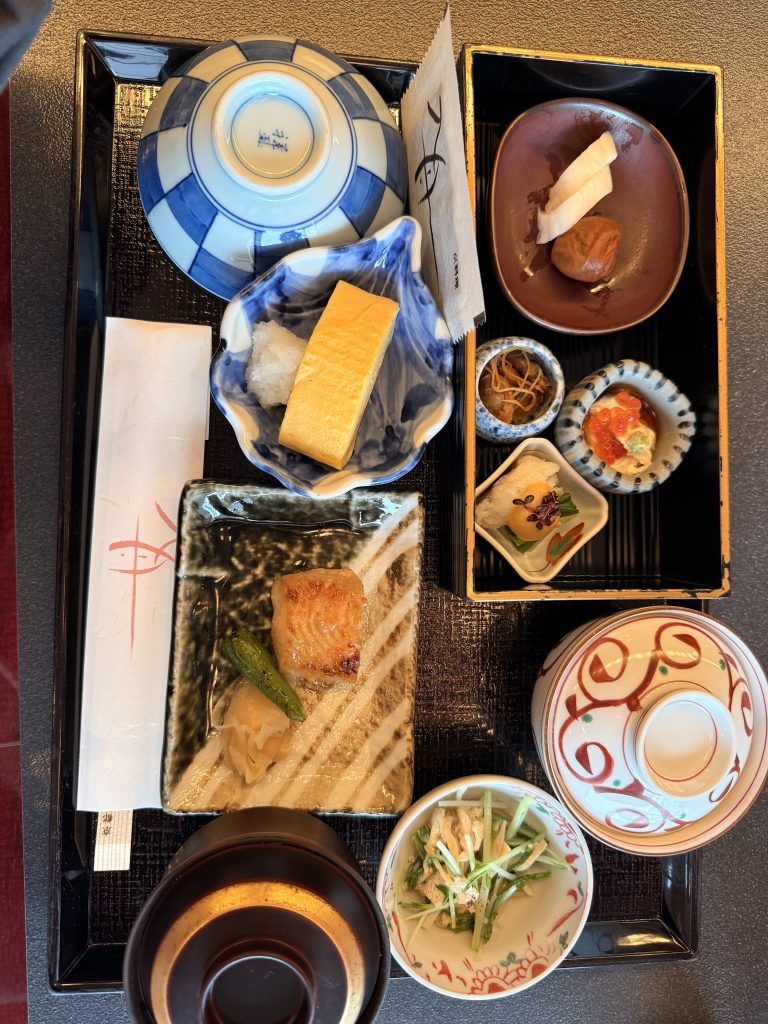 翌日はゆっくり寝て9時に朝食を取り、雨が降ってきたのと当日開催される時代祭りの道路規制を心配され早めに戻られる予定となりました。