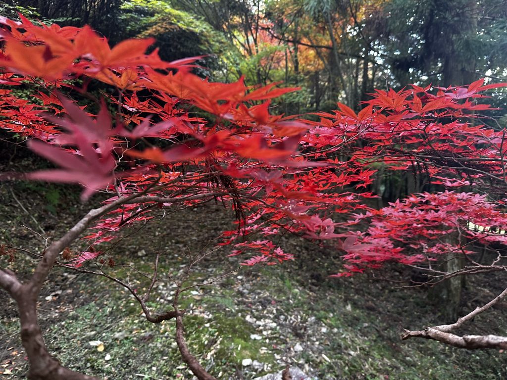 紅葉のトンネルは足元が悪く、近くまで行くことはできませんでしたが、遠目からでも鮮やかな紅葉をしっかり堪能していただけました。