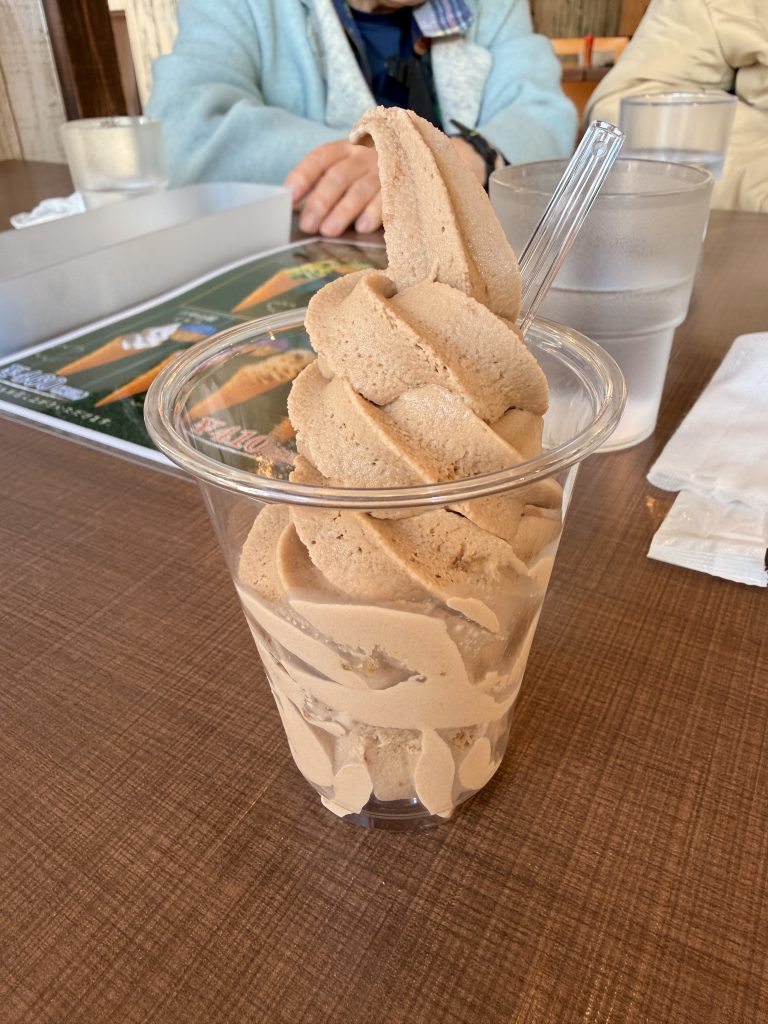 残念ながら選べるメニューがあまりなくて、11月だけどソフトクリームをお召し上がりになりました。