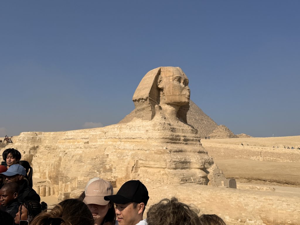 クフ王のピラミッドに入り、ランチには9つのピラミッドが見えるレストランでランチを摂り、午後からはスフィンクスへ!